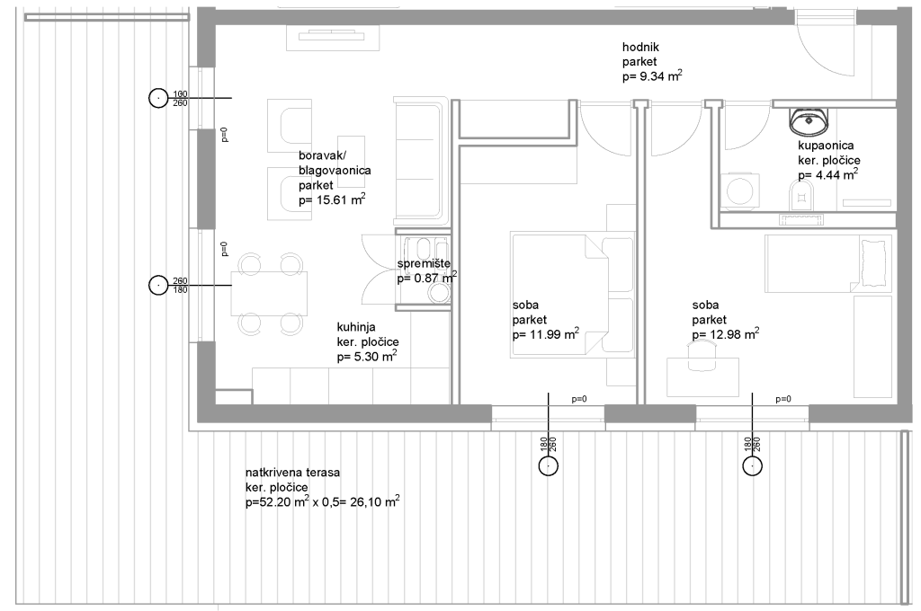 | 8. | Natkrivena Terasa | 26,10 m² |